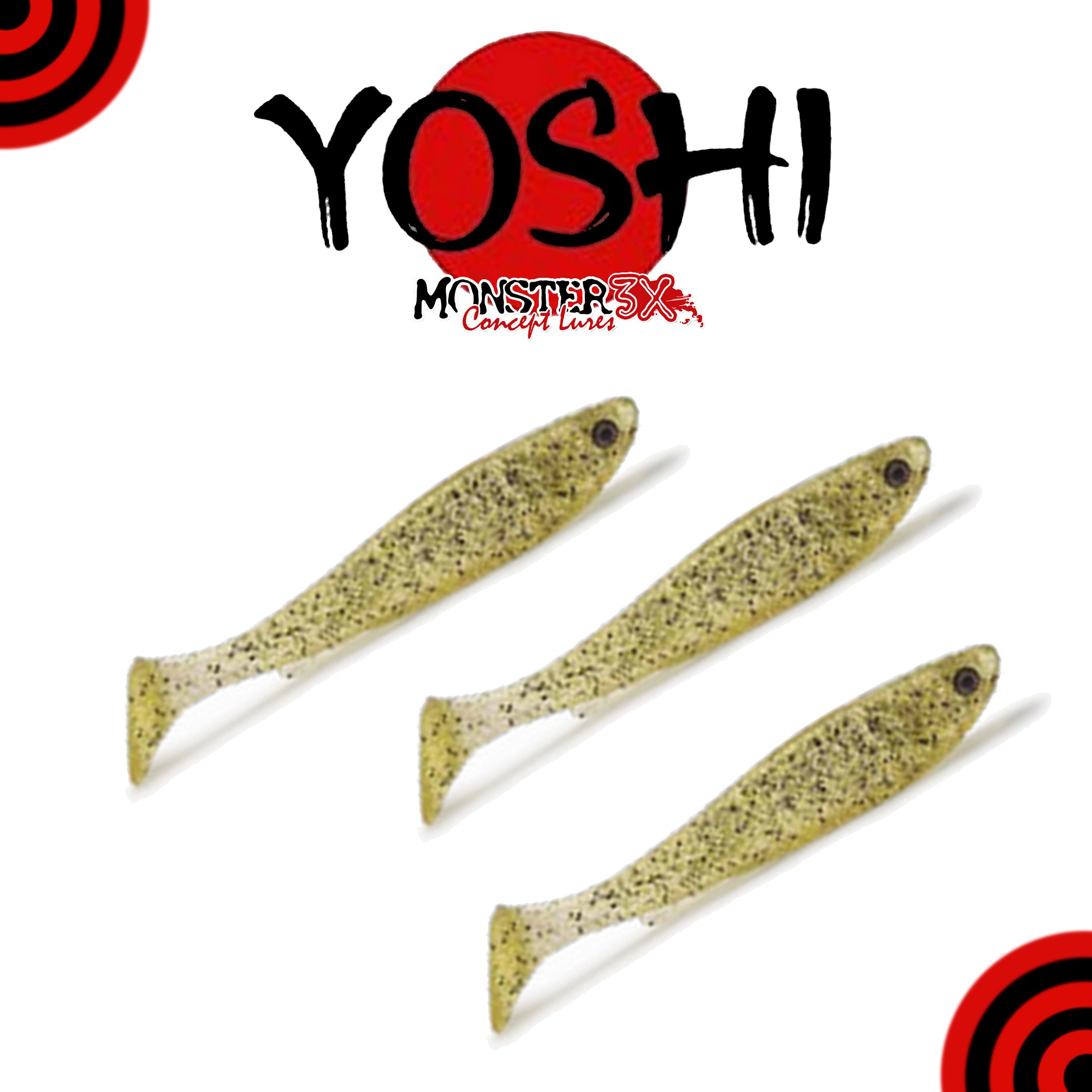 Desenvolvida em parceria com Pedro Ojima (JP Fishing), a Yoshi é uma isca fantástica que tem uma vibração muito grande na água, com o rabo (Paddle) que tem uma movimentação extraordinária, atraindo muito o predador. Possui uma abertura para esconder o anzol e texturas em alto relevo no corpo, que faz uma vibração muito grande.